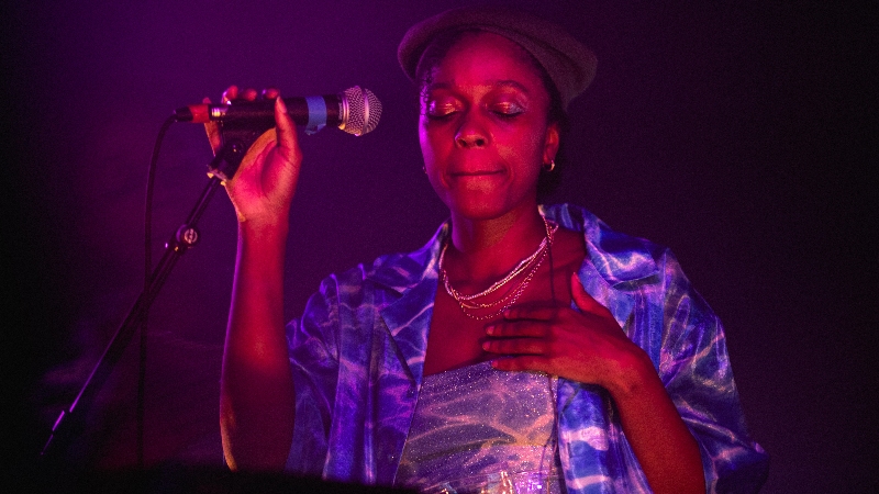 Do escuro ecoa a transição para um folk latino-americano, as máquinas de fumo têm a tarefa de nos manter no registo da actuação anterior e forma-se um nevoeiro do qual se ergue a figura de Puçanga – nome que no Brasil significa remédio caseiro ou feitiço. Em Portugal, refere-se a Vera Marques, produtora e compositora da Margem Sul que navega entre o uso da voz exploratória e mistura de sons electrónicos sombrios. Num ambiente de renascimento, como se do começo de algo novo se tratasse, recorda-nos de Audre Lorde ao declarar The Master’s Tools Will Never Dismantle the Master’s House – um verdadeiro ano zero como ponto de partida para algo que se pretende instigante e que abale os velhos modos de existir e pensar em comunidade. Vindo do céu apetrechado com uma mensagem que nos pretende fazer debruçar sobre o nosso lugar no mundo, o lugar entre o emocional e o político, guiando-nos através do seu repertório e dando-nos sempre uma contextualização sobre o que nos ia cantando (e ensinando). Agiu, realmente, como remédio caseiro para os males que nos são comuns – os da existência.