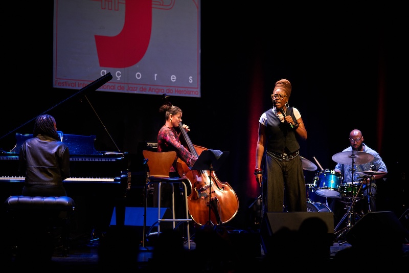 Em Jazz Is, o autor americano Nat Hentoff cita o pianista John Lewis, lendário membro de ensembles comandados por Lester Young ou Dizzy Gillespie, e a quem perguntaram se era possível notar musicalmente o swing numa pauta: “Não. O swing é musicalidade elevada”, afiançou o pianista numa aula de estudos avançados de improvisação jazz na prestigiada universidade de Harvard. “É como o Serkin a tocar uma sonata de Beethoven. Ele conhece todas as notas, mas ele também sabe o que mais está lá”. O sábio John Lewis referia-se à matéria invisível de que os grandes compositores se socorrem nas suas obras, as nuances que não são possíveis de inscrever numa pauta, mas que quem muito estuda — mergulhando analiticamente na obra desses génios, analisando as suas biografias, compreendendo o espírito da época em que viveram e criaram — consegue alcançar. Essas pessoas sabem bem o que mais está lá. E anteontem, a coroar a segunda jornada do AngraJazz’25, num lotadíssimo Centro Cultural e de Congressos, em Angra do Heroísmo, a cantora Ekep Nkwelle, do alto da sua vibrante juventude, deixou muito claro que realmente sabe muito bem o que mais está lá, que reconhece essa invisível filigrana que envolve marcos importantes criados ou refinados por alguns dos maiores nomes da história do jazz, de Duke Ellington a Art Blakey, de Sarah Vaughan a Abbey Lincoln. O facto de ser a sua primeira apresentação no nosso país tornou a ocasião ainda mais especial.