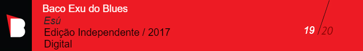 Revelar o que se pode ouvir no novo Esú do rapper baiano Baco (Exu do Blues) nunca poderia ser uma tarefa bem sucedida sem a devida nota prévia. Isto porque, em pelos menos metade da obra, são essas mesmas referências conterrâneas da escrita de Jorge Amado ou da música d’Os Novos Baianos, o apelo à negritude sonora de Chico Science, Nação Zumbi ou Tim Maia e todas as evocações religiosas que definem a cultura ancestral de um povo em oposição ao que lhes foi imposto durante séculos, que dão corpo a um álbum inédito e que é já um marco do hip hop nordestino. Digo metade, sim, pois a outra é construída em cima da premissa mais sensível e comum que pode existir: a vulnerabilidade de/do ser humano.