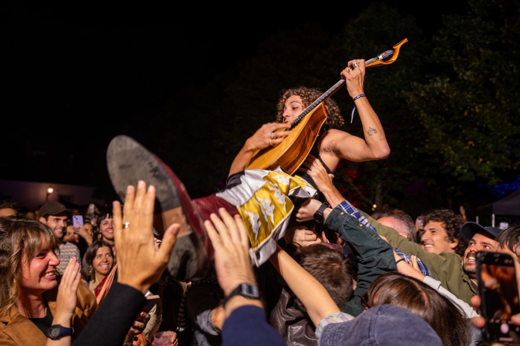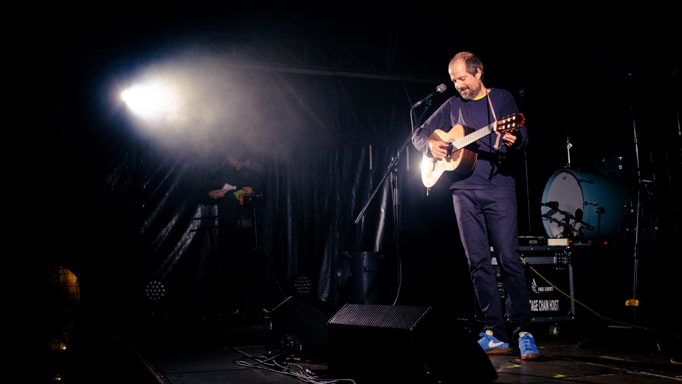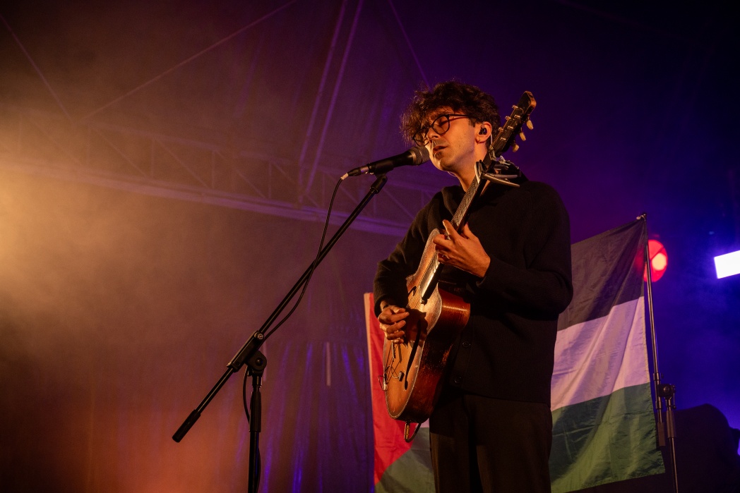 Um dos outros bons exemplos disso foi o senhor a que assistimos a seguir no mesmo palco, Luís Severo. Sempre com uma bandeira da Palestina na retaguarda, lembrando que a sua música tem um posicionamento claro e muitas vezes uma politização, o músico foi igual a si próprio — de guitarra na mão, foi cantando poemas categóricos, tecendo ao vivo uma tapeçaria de canções magistrais com a sua interpretação singela.