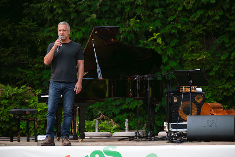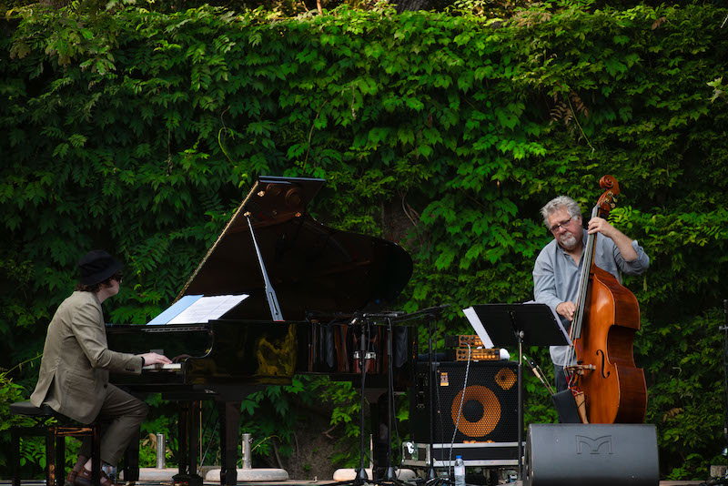 Logo a seguir ao concerto da trompetista portuense no auditório climatizado, foi a vez do Ténis do Parque de Serralves acolher a segunda e última formação de sábado num final de tarde pleno de sol. O baterista João Lencastre e o contrabaixista Michael Formanek — os únicos músicos a estarem presentes em ambos os fim-de-semana do festival — juntaram-se então ao pianista Jacob Sacks para juntos darem vida às composições de João Lencastre escritas para o seu Communion 3. As formações Communion do baterista já produziram álbuns que foram recebidos com louvores generalizados por parte da crítica especializada. De memória recente é Unlimited Dreams (Clean Feed Records), gravado em octeto com alguns dos melhores músicos da cena de jazz e improvisação lisboeta, que em 2021 arrecadou vários prémios. Antecederam-lhe dois discos, também eles lançados pela Clean Feed Records: Song(s) of Hope (2019) e Movements in Freedom (2017). Estes trabalhos, que estiveram em grande plano neste concerto dos João Lencastre’s Communion 3, foram ambos gravados em trio e com uma formação muito próxima à que presenciámos em Serralves, apenas com Formanek a substituir Eivind Opsvik no contrabaixo.