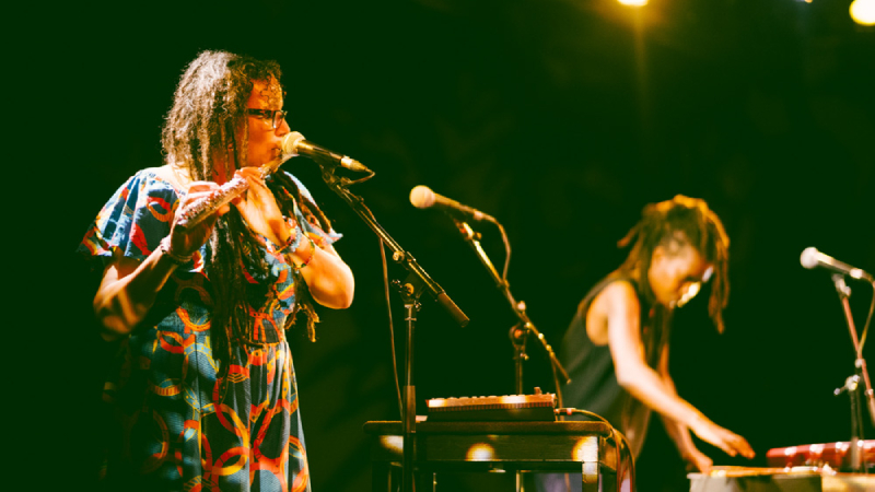 Na segunda jornada da edição 2022 do Jazz em Agosto, a dupla formada por Camae Ayewa e Nicole Mitchell proporcionou, em apresentação no Auditório 2 do Edifício Sede da Fundação Calouste Gulbenkian, em Lisboa, um momento de densa intimidade, quase como se nos tivesse sido dado a observar um agitado sonho/pesadelo de alguém sobressaltado com a violência da História: “They don’t want us in their future, in their History, in their present”; “We birthed the world”. As frases proferidas e repetidas por Moor Mother em funda voz quase a roçar as margens do silêncio têm a rugosidade de cicatrizes e sobrepõem-se a uma base sonora tecida com arremedos de flauta processada, efeitos electrónicos via iPhone e iPad, conchas e outros pequenos objectos percutidos e carregados de efeitos. A dupla apresenta uma única peça, uma suite feita de dor e sofrimento e orgulho e resoluta resistência que se estende por uma hora intensa, mas que nunca chega a ser agitada, impondo-se como um subterrâneo tremor de magma emocional que nunca chega à erupção, antes escorre abaixo da superfície, incandescente na sua força que resulta de um clamor que dura há séculos. “Dúvidas não há, estamos num museu de arte contemporânea feito ringue de boxe”, escreve aqui ao lado João Castro a propósito dessoutro concerto que Moor Mother protagonizou ao lado dos Irreversible Entanglements no momento primeiro deste festival. Esse ringue transformou-se ontem num dojo em que aquelas duas guerreiras exercitaram os seus combativos músculos criativos, entrelaçando ideias, sentimentos, palavras e sons improvisados numa indivisível peça de afirmação e de vontade de superação. Nada derruba estas mulheres, nem sequer a ensurdecedora História que as quer engolir.