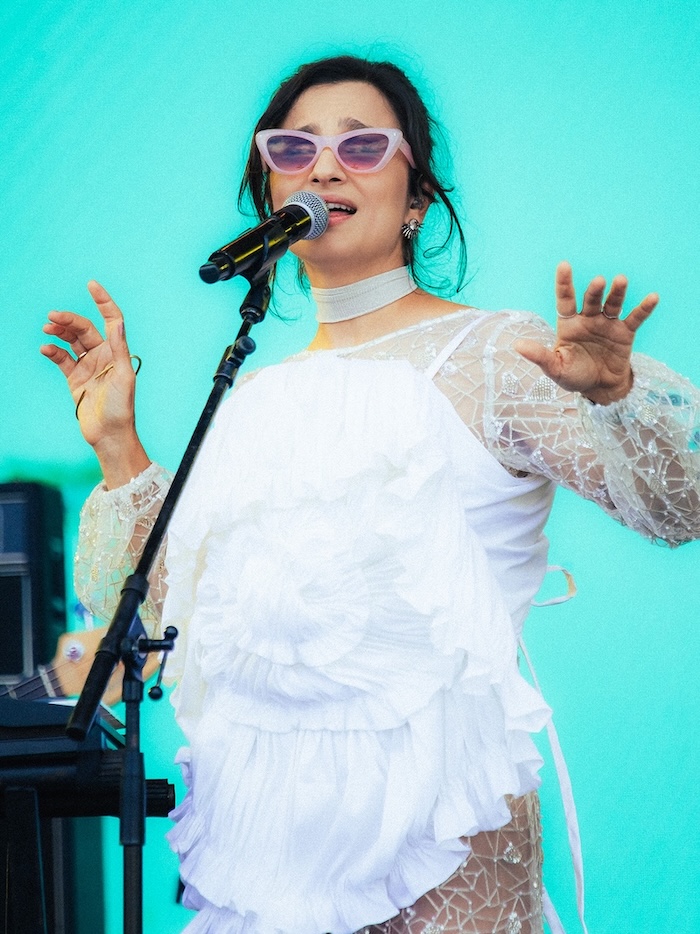 “Eu penso que raros são os festivais que têm coragem de colocar um som tão autoral, tão experimental e psicodélico assim, desse jeito. Então, tô muito agradecida por essa oportunidade, né, de poder pisar nesse palco com a banda dos meus sonhos e fazendo o que eu gosto de fazer, sabe? Para mim, é uma felicidade imensa”.