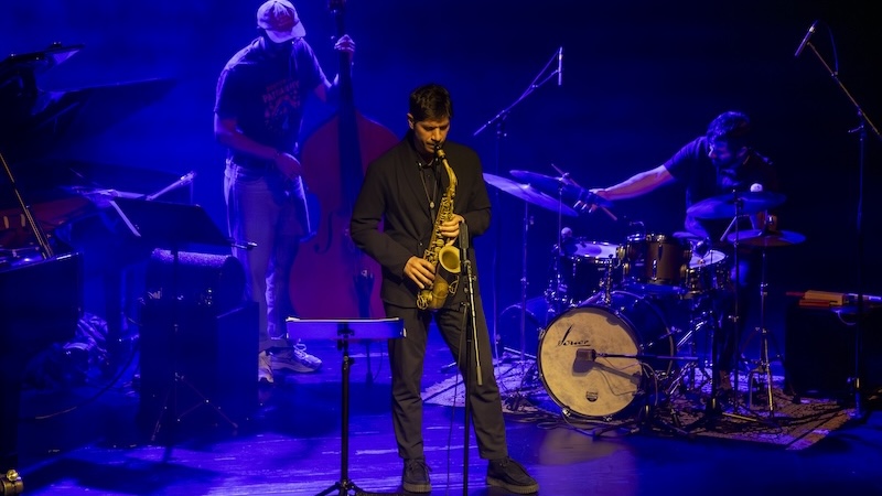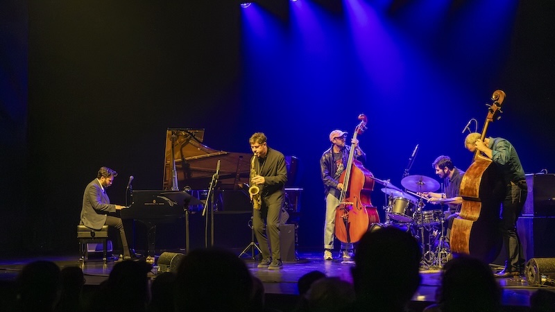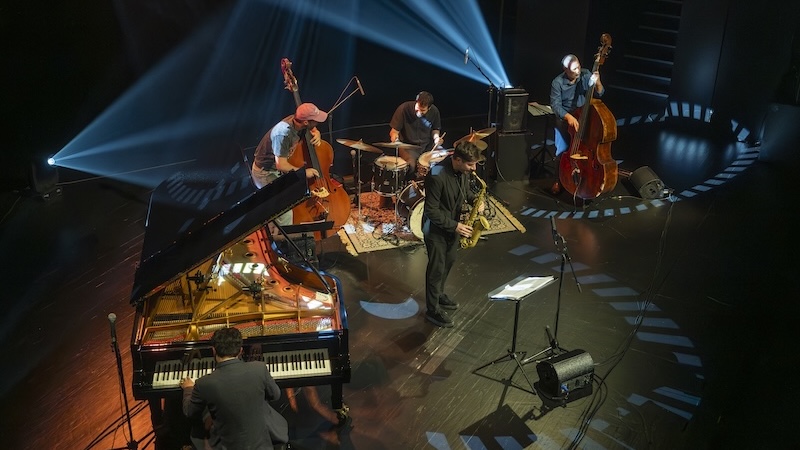 Pedro Branco entra em palco, senta-se (ao piano) e começa a tocar. Segue-se-lhe João Sousa. Depois, João Hasselberg, que se junta à música e enche o espaço com duas notas ao mesmo tempo que ergue o contrabaixo do chão… Mais um contrabaixo, o de Hernâni Faustino. Ambos participaram na gravação do álbum. Por último, José Soares, que confia no seu saxofone alto para representar o tenor do saxofonista norte-americano Tony Malaby, que participou na gravação do álbum. Malaby é uma das figuras de proa do catálogo da Clean Feed, que ao longo do último quarto de século tem proporcionado encontros felizes entre músicos de diferentes latitudes. Durante o concerto, tanto Pedro Branco como João Sousa destacam a amizade que os une e a relação que mantêm com estes músicos. É um jogo de afinidades e cumplicidades. Na apresentação ao vivo de Another State of Rhythm, a abertura é uma surpresa: uma composição que não faz parte do alinhamento do álbum. Intitulada “Aurora”, foi composta por Pedro Branco para dedicar à sua afilhada — a filha de João Sousa.
