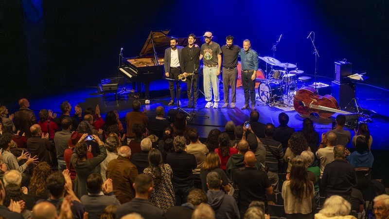 Depois de “Aurora”, começa a apresentação das peças do álbum, com “Giraldo” e “The Sixth Commandement”. Excelente captação de som, da responsabilidade de José Sousa, com destaque para o saxofone. A música é profundamente bela e a interpretação exímia. Vive entre a energia libertária e uma certa evocação, por vezes transcendente. “Ballad for Paul” constitui uma homenagem. Nascida em Parallels, o álbum de estreia dos Old Mountain, teve uma reprise mais tarde, nesse mesmo ano, no segundo álbum do grupo, intitulado This is Not Our Music — foram editados pela Nischo, outra editora de referência do jazz nacional, e em ambos Pedro Branco surgia na guitarra eléctrica. “São duas melodias que se vão entrelaçando e que foram compostas em homenagem ao nosso herói musical Paul Motian”, afirmava Pedro Branco na referida entrevista ao Rimas e Batidas. A assumida influência do baterista Paul Motian (1931–2011) na estética dos Old Mountain remete-nos para a década de 80, em obras como It Should’ve Happened a Long Time Ago, do Paul Motian Trio, ou deste baterista integrado no quarteto do pianista Paul Bley, em gravações para a editora ECM. Old Mountain ao vivo no CCB é uma experiência que vive tanto do diálogo entre os instrumentos como do silêncio. Sousa está ladeado pelos dois contrabaixistas. As tessituras e a paleta de cores são riquíssimas, com os músicos a explorarem as várias capacidades dos instrumentos. Em “Montanha”, que fecha formalmente o concerto, o contrabaixo friccionado de Hasselberg junta-se agora às vozes do piano e do sax alto de José Soares. Na plateia, ouve-se a voz da pequena Aurora. Hasselberg sai do palco e surge a dar a volta à plateia. Passa à nossa frente e atrás de Aurora, entoando a melodia em tom nasalado, como um eco da montanha.