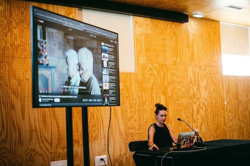 Ainda (e sempre) as conversas a ligar as palavras à música e de como a tradição musical é um conceito mutável que corre entre margens instáveis e em tudo vulnerável ao tempo. A compositora Carme López assume — volvida do concerto no dia anterior — o papel de investigadora no campo da etnomusicologia galega e traz em partilha “Tradicional galician music. Tradition and avant-garde”. Dela escutámos excertos das duas marcas identitárias: a gaita-galega e o canto. Uma “muiñeira dos Ancares” pelo timbre do fole, e uma outra recolha, em vídeo, de Rosa e Aida Garrido, duas cantadeiras galegas. Tradição oral, mecanismo de herança cultural em contexto rural pré-industrial. Há que ter bem presente que o que se ouve hoje vindo de outrora imortaliza o momento, mas não o resume como o de sempre. Há mecanismos de transformação entre perdas e ganhos. Contudo sabemos que houve momentos de ruptura, ligados à emigração e ao êxodo rural, e à deliberada manipulação e apropriação fascista franquista, que contribuíram para aceleradas perdas e empobrecimento cultural. López actualiza-nos no contexto dinâmico das Foliadas, a exemplo a da Consagrada. Música tradicional também feita com novas roupagens e instrumentos, de carácter espontâneo e sem obedecer a cânones escolásticos, com uma prática nas ruas em que é ténue ou mesmo inexistente a separação entre músicos e espectadores, a dança e o baile unem-se. Portanto, a música em pleno sentido tradicional, mais que pelo conteúdo imutável, pelo motivo, ancestral como sempre terá acontecido.