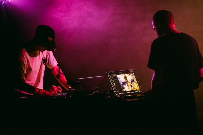 Das palavras à música, o palco retoma-se n’”Os Penicheiros” para receber uma acção conjugada de paisagens sonoras e visuais com ϙue x equii (A/V live set). Vlady Che, ucraniano radicado em Lisboa, responde por ϙue aos comandos da electrónica em “TIME” — uma estreia absoluta. Uma performance ambiental em som quadrifónico e em que o cúmplice equii, num frente-a-frente operativo, faz a expressão visual da abstracção sonora. Uma tela que permeia fluxos proto-estáticos dispostos a inter-actuar entre si e da tela à plateia — como no cinema, e neste caso musicado. A música insere-se em campos entre o ambient e a IDM (Intelligent Dance Music). Um vasto espaço a percorrer e de quase de imediato é contraposta com uma outra experiência vivida — aquando da apresentação e estreia em Portugal dos Autechre numa sala às escuras. Aqui as luzes estão em demasia para o intento imersivo. Os robôs nas torres de palco não souberam resistir à acção, e que nem farolins entretiveram-se a ofuscar de luz a projecção. Ora, era suposto os visuais fazerem a sua mediação à música. De certo que um fechar de olhos, um baixar a cabeça resolveria o vivido, mas o estímulo proposto era audio-visual. Aconteceu mas podia ter-se evitado. A acção da dupla prosseguiu reflexiva e compenetrada aos comandos, tornando militante a sua estreia. No final desfraldaram a bandeira ucraniana entre mãos e dedicaram o momento aos artistas que sacrificaram a sua liberdade na defesa territorial à agregação russa.