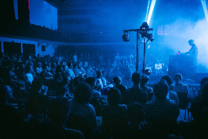 No mesmo estrado-palco, agora com uma certeira quantidade luminosa — quase penumbra para escutar e ver no sentir a música de Beatrice Dillon. Na bagagem surge com uma imaculada ideia contida em Basho, registo bem recente adicionado ao prestigiado selo GRM – Groupe de Recherches Musicales. Um título retomando a ideia do filósofo nipónico Kitarō Nishida, que remete para o espaço ou campo onde as coisas têm lugar de existência. Uma electrónica elementar, e como se lhe reconhece de maior atributo, muito alicerçada nos ritmos e fluxos texturais ligantes. Uma prestação com momentos conexos apontando a bolhas que se coalesciam em sucessão como estrutura, onde os glitches se escutaram como propagações cromatográficas, propagados sobre a superfície. Mas foi no ritmo que se afirmou soberana, como agente aceleradora de partículas. Registos de polirritmias que tanto apontavam para uma imaginada timbila espectral ou mesmo um qualquer neologismo como “xenofones” a operar, onde na vez da madeira era um outro elemento inorgânico e vibrante, desconhecido e de diferentes origens. Dillon devolveu, com a mestria que se lhe associa, uma fundamental demonstração de saber com imediato resultado no campo aural individual dos presentes — um deleite.