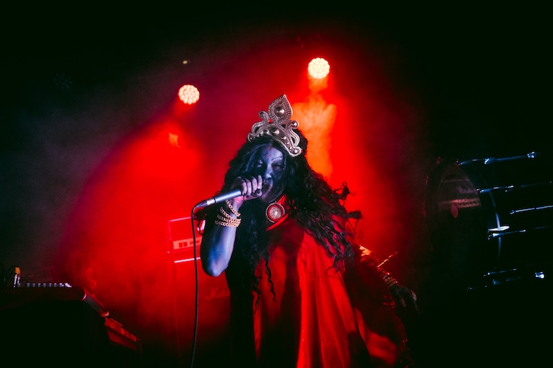 Mesmo não sendo totalmente devotos a esta sonoridade, as prestações ao vivo de Divide and Dissolve disponíveis nos domínios do YouTube a que fomos assistindo ao longo dos últimos anos eram suficientemente atractivas para nos deixarmos mergulhar no universo causticamente rendilhado pela dupla formada por Takiaya Reed e Sylvie Nehill. Infelizmente, a passagem das australianas pelo OUT.FEST não nos cativou da mesma forma que os vídeos assistidos online. Sim, tem a pujança lenta e característica do doom metal a provocar balanço do pescoço para cima, mas soou tudo demasiado repetitivo, como se cada tema fosse um mergulho num denso loop que nos conquista nos segundos iniciais, mas que perde a graça nas repetições arrastadas. A última das malhas parecia até nem ter fim, de tão exaustiva que estava a ser aquela iteração de guitarra e bateria — só após longos minutos é que a música se desenvolveu para algo com mais nuances e capaz de nos voltar a captar a atenção. Notámos ainda a falta do saxofone, que Takiaya Reed tantas vezes utiliza para dar camadas extra aos temas, nesta passagem da banda pelo Barreiro, já que o instrumento de sopro foi tocado apenas por breves momentos no início de uma das faixas.