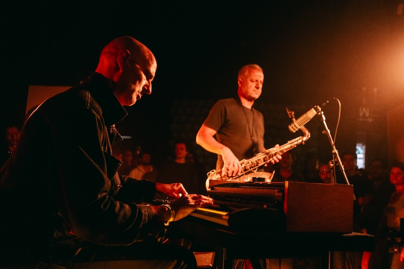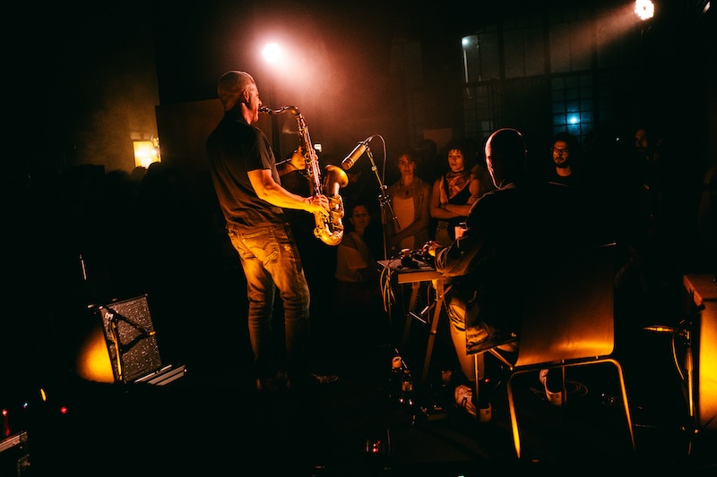 David Maranha e Rodrigo Amado têm um documento único e recente em Wrecks. Um registo que se tornou icónico tão de pronto na discografia de ambos obreiros de há muito e exploradores sónicos. Um disco que traz no nome uma antítese, em nada fim de linha por um lado — antes um próspero começo entre ambos. Um primeiro encontro em 2024 precisamente gravado na outra margem, mas que faz pleno sentido vivenciado nesta outra margem — oposta. Espaço no qual Amado se completa em pertença, como músico de habitual escuta em várias edições do OUT.FEST. Mas a dupla Maranha e Amado oferece uma possibilidade de ver acontecer uma música que procura transcrever a decadência, de enrugada a amalgamada, da sociedade contemporânea, das cidades dominadas pelo imperialismo em fim de vida — esperemos. Uma rugosidade áspera e transbordante como a inundação sónica do orgão processado de Maranha faz parecer. Uma onda gigante inundou o espaço outrora habitável e onde os diálogos de tensão e libertação do tenor de Amado procuram descrever e mapear o estado das coisas. Um processo que tem um começo definido, mas que propaga e se prolonga num tempo erosivo, e nisso parece num sem-fim, cíclico ou de imprevisto desfecho. Uma peça invariavelmente mutante nos detalhes sobretudo do tenor que aqui nesta margem, no palco das outras margens, se escutou e sentiu em candura mais até que a acutilante forma fixada no registo. Foi por ver a música a acontecer diante dos olhos, num amparo de um efectivo abraço — havemos de voltar em breve em tudo mais.