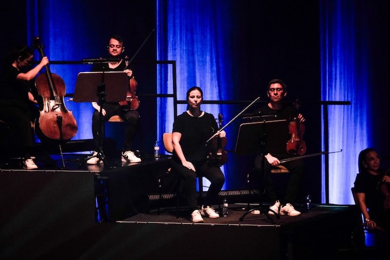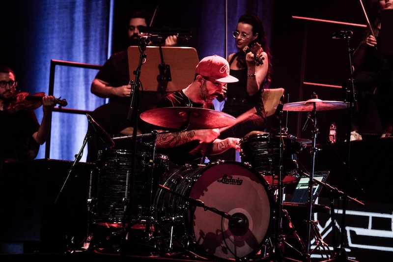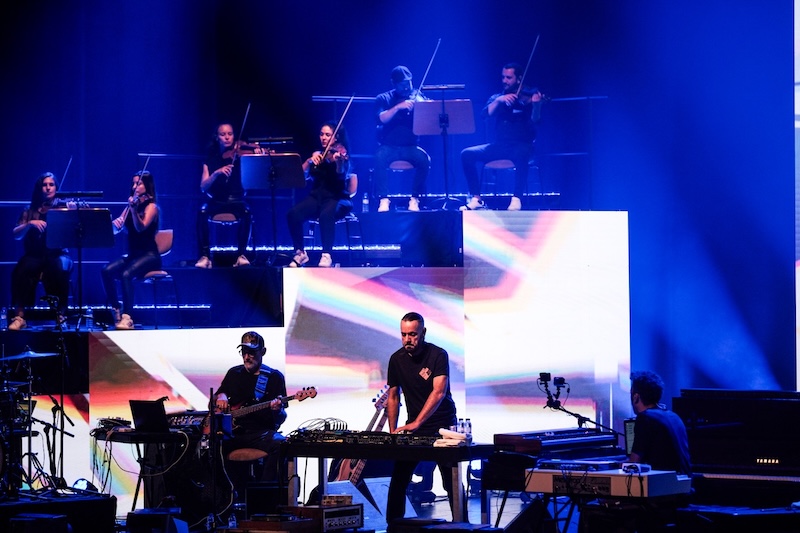 À sua frente tem a MPC — não a velhinha 2000 com a qual produziu este Beats Vol. 1: Amor — para mais uma dança a dois. Desta vez, há espaço para levantar o véu e estender alguns dos samples que se tornaram inconfundíveis nas suas versões corte-e-costuradas. São, além do mais, essas deixas em sucessivos momentos prolongadas que servem de sinal de arranque a Fred na bateria, Francisco Rebelo no baixo e João Gomes nos teclados — que para Orelha Negra inteira lhes falta apenas a presença de DJ Cruzfader — em primeira instância. Depois, a espaços, são as duas dezenas de músicos também presentes que intervêm a arredondar floreados propostos sobre um alinhamento intocável, uma orquestra que se divide entre violinos e violoncelos, trompetes, saxofone e clarinete, para engrandecer essa opus magnum. Todo este ensemble coordenado pelos olhares discretos e os gestos hip hopianos deste autêntico maestro, um eterno “não-músico” à frente de uma irrepreensível turma de músicos, autor de um trabalho que ao virar do milénio abriu por cá horizontes à música hip hop enquanto música propriamente dita e reconhecida.