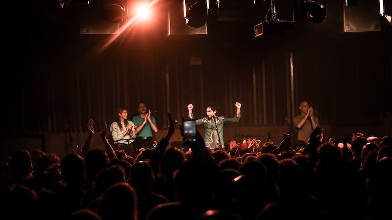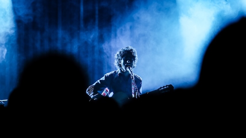 As boas-vindas são-nos dadas por Leonor Arnaut, artista portuguesa que lançou recentemente a sua carreira a solo com o single “Vida Cega”. Pelos feixes brancos de luz que atravessam a sua voz, articulando-se nos movimentos rítmicos dos instrumentos, instala-se um ambiente acolhedor e intimista, que se propaga pelo silêncio do olhar de um público que a ouve atentamente e a quem tem o prazer de apresentar o seu novo “Avé, Raposa”, lançado naquele mesmo dia como segundo avanço daquele que será o seu álbum de estreia. Breve mas poderosa, a sua performance foi como que uma chuva de melodias delicadas geradas por um alcance vocal fora do comum, qual rouxinol em palco a envolver o público numa energia calma e profunda que abriu caminho para o artista principal daquela noite.