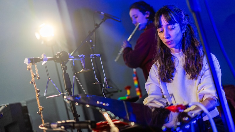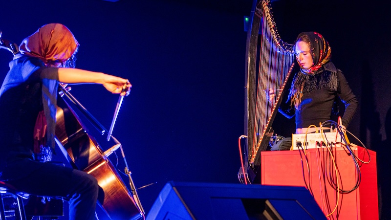 De URTIQA parece nunca termos ouvido, foi necessário aqui chegar — ao Quartel das Artes, em Paredes de Coura, para o segundo dia desta efémera passagem. Um duo de violoncelo e harpa, protagonizado por Bruna de Moura e Frederica Campos, respectivamente, que não prescindem de electrónica conexa aos seus instrumentos de cordas. O encanto da harpa haveria de se escutar mais adiante. À medida que quem enfrentou uma noite de chuva para aqui entrar se acomodava na sala, via um cenário em movimento, lento. Como essas peças de teatro onde já se movimentam actores e actrizes de um lado para o outro em cena. Arcadas contínuas no violoncelo propagavam o mote sonoro que haveria de ser modo predominante. Em regime de nota pedal, gravitando tonal. Como se não houvera um começo ou se apanhasse um movimento ao virar da esquina, sem dele saber. Na suite de improvisação apresentada houve um jogo permanente de busca, pisando uma linha fronteira como uma corda bamba. Mais parecia uma inocente forma de experimentar entre estar do lado do desconforto ou do outro em recompensa harmónica. Entre dissonâncias e consonâncias, no acorde harmonioso que resvala no desencontro enquanto se atreve caminhar. Ressaltos no propósito consciente que assim serão de outra natureza que não o erro. Um balanço pendular, entre um lado e o outro, numa procura sem alcance em definitivo. Em que a combinação harmónica entre violoncelo, quer em arcadas quer em pizzicato, com a harpa bordejada soube a suaves recompensas que oscilaram face à aspereza das cordas preparadas. Terá sido essa dualidade o ponte de maior interesse em forma de baloiço final.