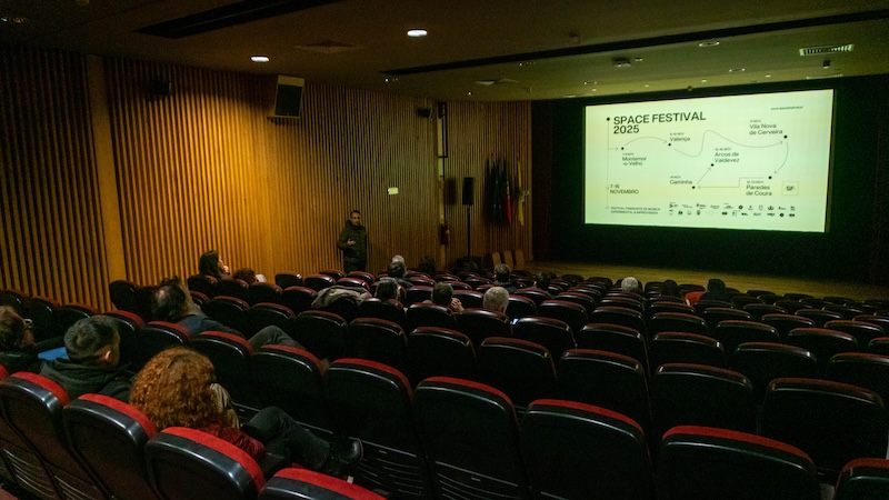Pelos territórios, pela música, num simultâneo propósito de mostra, descoberta e revelação, o Space Festival, desde 2022, assumiu um modo itinerante na sua programação de dez dias. A antestreia do documentário Space Festival – Festival Itinerante de Música Experimental e Improvisada finaliza o programa do primeiro de dois dias de paragem em Paredes de Coura nesta edição de 2025. Nuno Alves assina a direcção do filme, e antes da projecção, no pequeno auditório do Centro Cultural local, comenta a experiência, em como a cada concerto há esse encontro do desconhecido com propostas e música a descobrir. “Quem tenha vindo a um concerto hoje, pode voltar amanhã e ter nisso uma outra experiência”, reforçando que a música aqui não se repete nem no modo, nem na forma, nem no lugar. Um documento para memória futura, de um tempo ainda bem recente, focado nos registos da edição de 2024, num exercício próprio da experimentação e improvisação para fixar a ideia de existência e do modo de fazer o festival. Num olhar desde dentro, de várias recolhas protagonizadas pelos que compõem a caravana. Retomam-se trechos das actuações de Dullmea, Michael Formanek’s Living Room, Ricardo Martins ou Pedro Melo Alves & Pedro Branco. Lugares de fala para os protagonistas que colocam o festival em andamento, Margarida Meira, Nuno Alves e Sofia Pancada; mas também para mentores da música como Samuel Martins Coelho, Miguel Ramos, João Martins, José Miguel Pinto, Henrique Fernandes, Gustavo Costa e Pedro Cardoso (aka Peixe). Mais passagens em palcos ao longo do percurso com OTTO, Camille Emaille, OGBE – Orquestra de Guitarras e Baixos Elétricos, Mariana Dionísio & Clara Saleiro, Phonospermia, Marcelo dos Reis “Flora” e as muitas vidas do próprio Space Ensemble: “Music For Short Films”, junto da Academia de Música Fernandes Fão para o programa “Cine-Música”, e com o Teatro Amador, Comédias do Minho, em “TRAMA”. Um olhar com vista ampla para o espaço onde esta música tem lugar, a servir de estímulo ao que ainda está por acontecer — a chamar por mais.