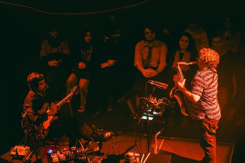 A electrónica usada é aqui a lava que escorre. Na verdade, é um recurso que permite esculpir drones de alta densidade por parte de ambos os músicos, que escutam atentamente o que o outro faz, reagindo em conformidade numa espiral de apontamentos melódicos e rítmicos de poética brevidade, mas de planante efeito. Mortágua usou ainda pequenas percussões, um saco com pedras que chocalhavam entre si, produzindo um som que remetia para a natureza. A música produzida por ambos era, por isso mesmo, exploratória no verdadeiro sentido da palavra, um estudo em tempo real das possibilidades de interacção dentro de um quadro técnico muito específico. O próprio chão parecia estar amplificado e ser câmara de ressonância, com o bater do pé ritmado a servir de matéria para o pedal de loops nos devolver uma estrutura compassada sobre a qual os dois músicos foram erguendo espirais de fumo sonoro. O uso do delay no saxofone por João Mortágua é prova de que os ensinamentos do dub na gestão do espaço há muito que abandonaram os domínios do reggae para inspirarem até as estéticas mais experimentais.