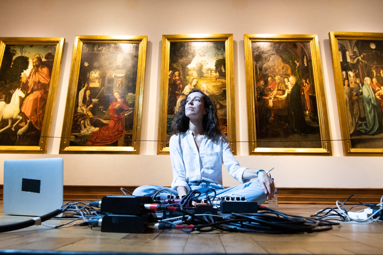 A paragem para jantar fez-se com o jogo do PAOK contra o Benfica na Liga dos Campeões como pano de fundo, um regresso à “normalidade”, por assim dizer, que terminaria rapidamente com a entrada no Museu de Lamego. Dullmea sentou-se no chão da Sala de Grão Vasco, à frente das pinturas do retábulo da Catedral de Lamego, e assinou a actuação mais desconcertante do primeiro dia. Com recurso a loops de voz que foi criando e modificando in loco, a artista mostrou que vive num universo à parte dentro no panorama português.